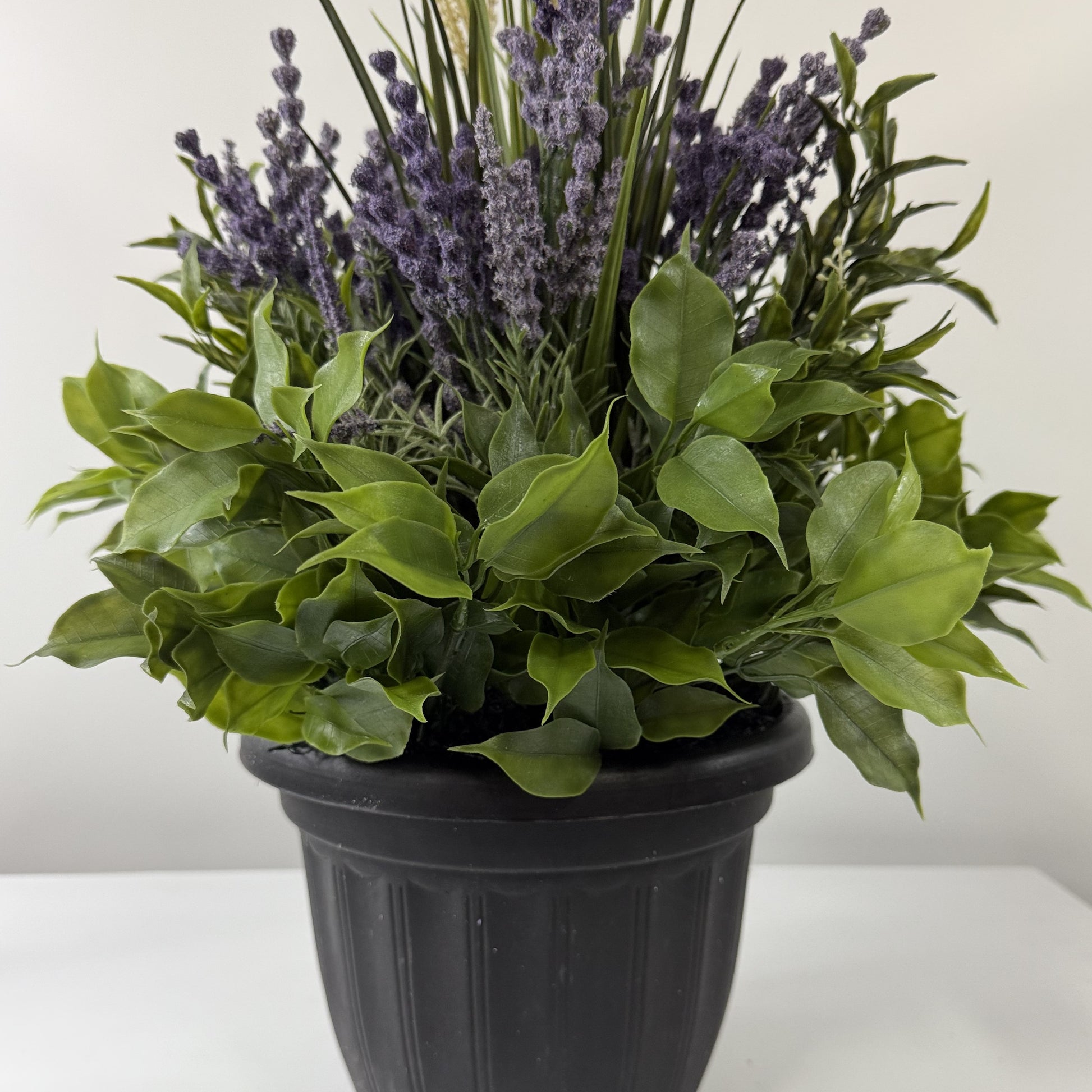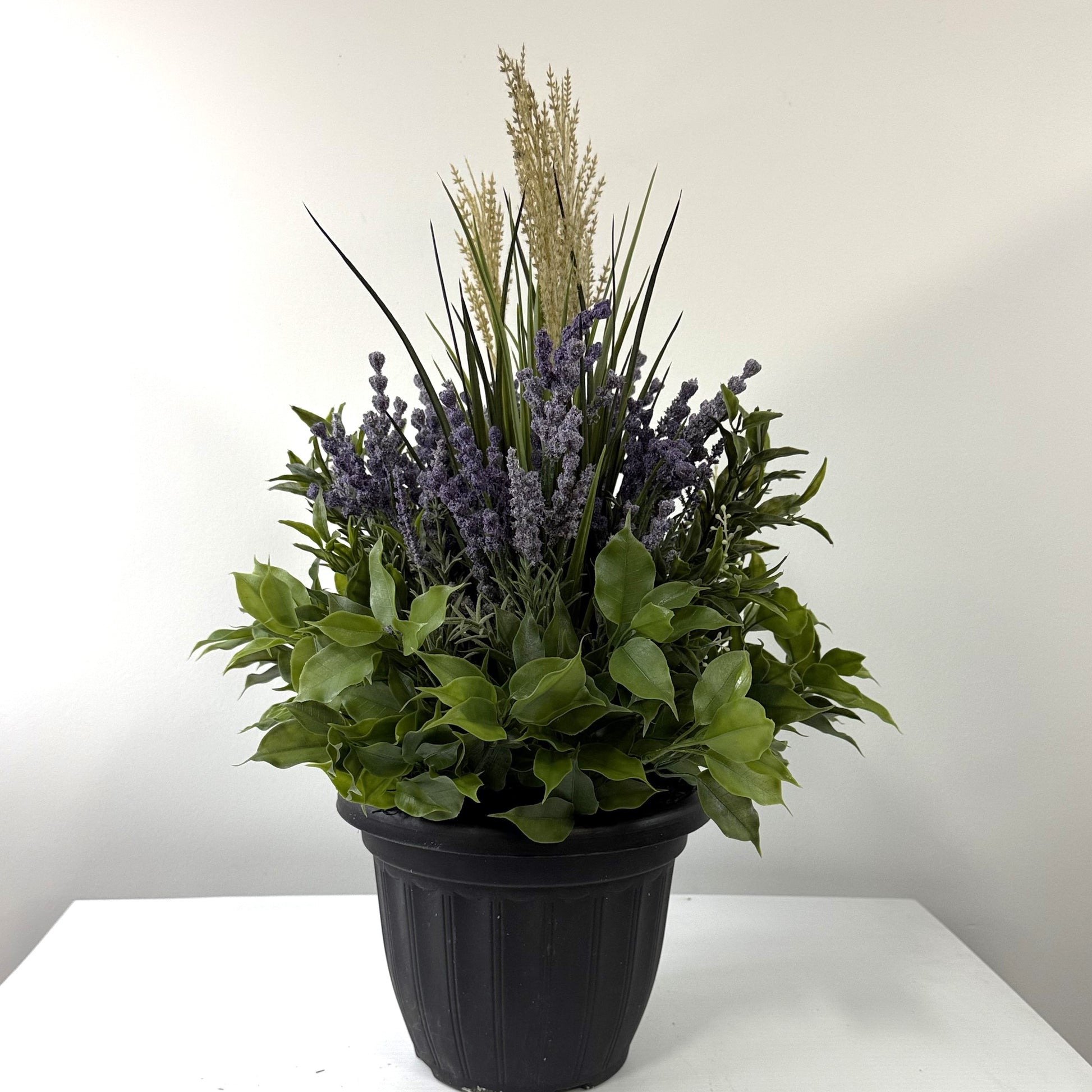 This custom 360-degree fake flower arrangement is perfect for adding beauty to your deck, poolside, or gazebo. Featuring a lovely and lifelike blend of heather, tufted field grass, palmetto, and flowering Salix, it brings texture and charm from every angle — no watering required.