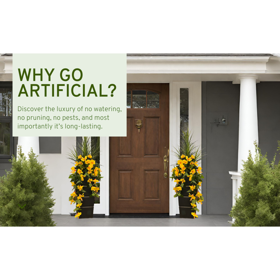 - Place it anywhere—from bright balconies to shaded patios or cozy condo corners. Unlike real plants, this silk flower arrangement flourishes effortlessly in all light and climate conditions.