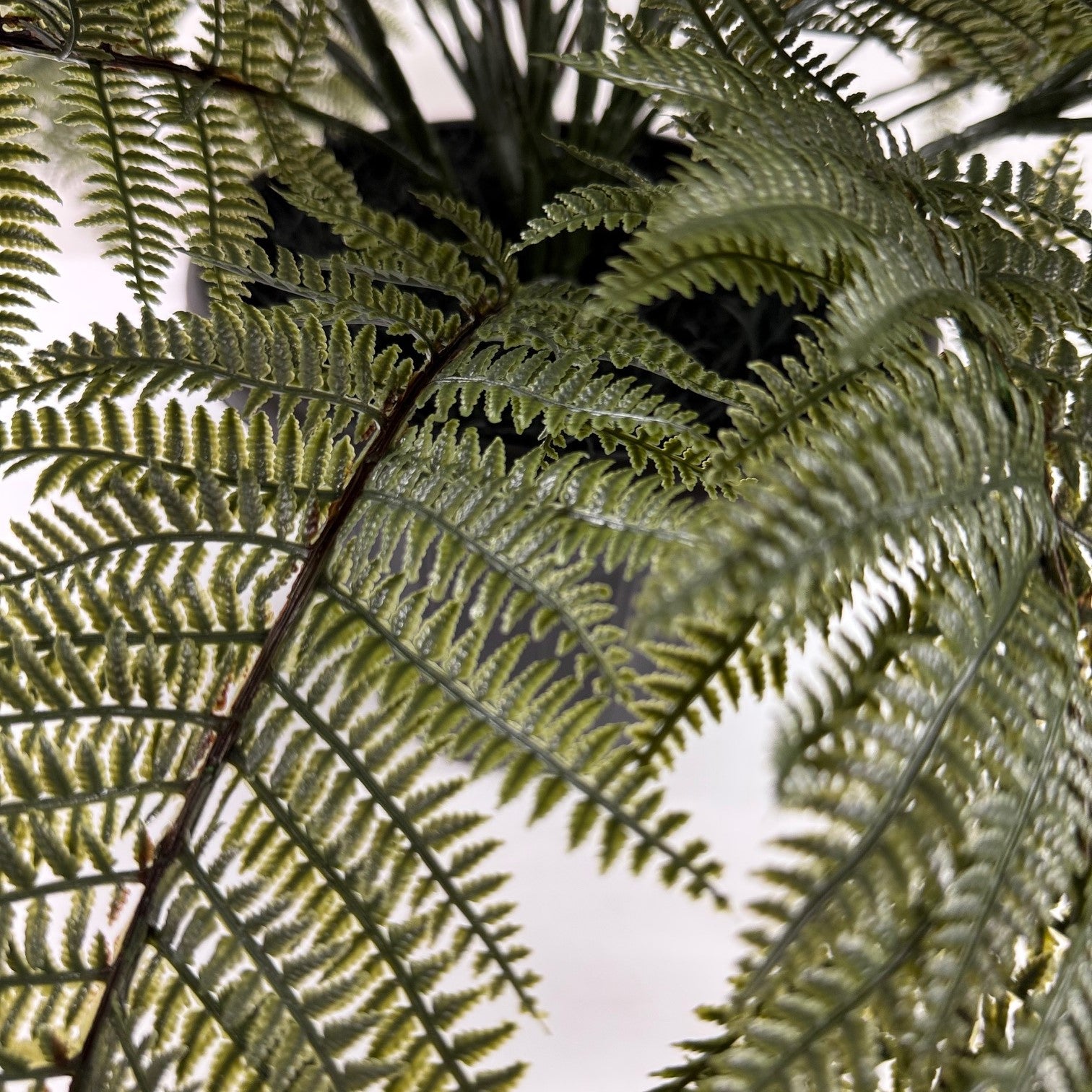 Exactly as you would find on your way down to local creek. A very good plastic fern made to endure outdoor weather. Add into you existing arrangements or use a focal point for your next great inspiration arrangement. If your looking for a very large and lush fern this is the one. Two tone fronds hang naturally for that perfect affect. A gorgeous piece for the coffee table, shelves, or office workspace.