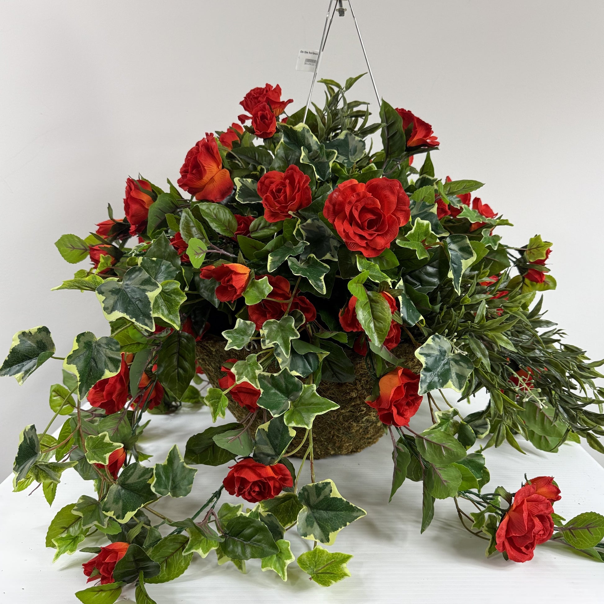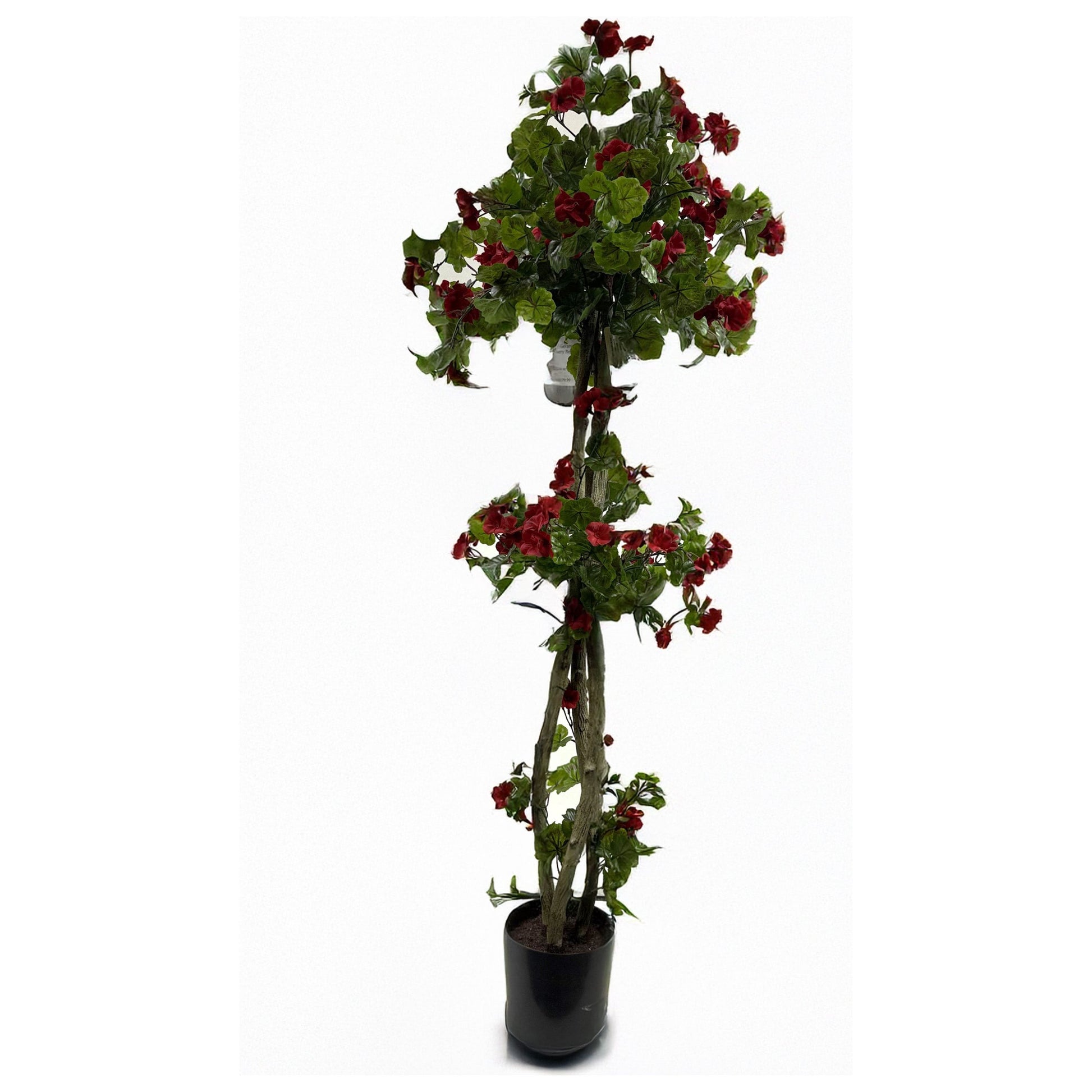 Let your space bloom with quiet elegance. The Garden Romance Set pairs two of our most enchanting pieces: the stately Geranium Flowering Topiary (5.5') and the cascading charm of the Rose Ivy Hanging Basket in a natural moss hanger.