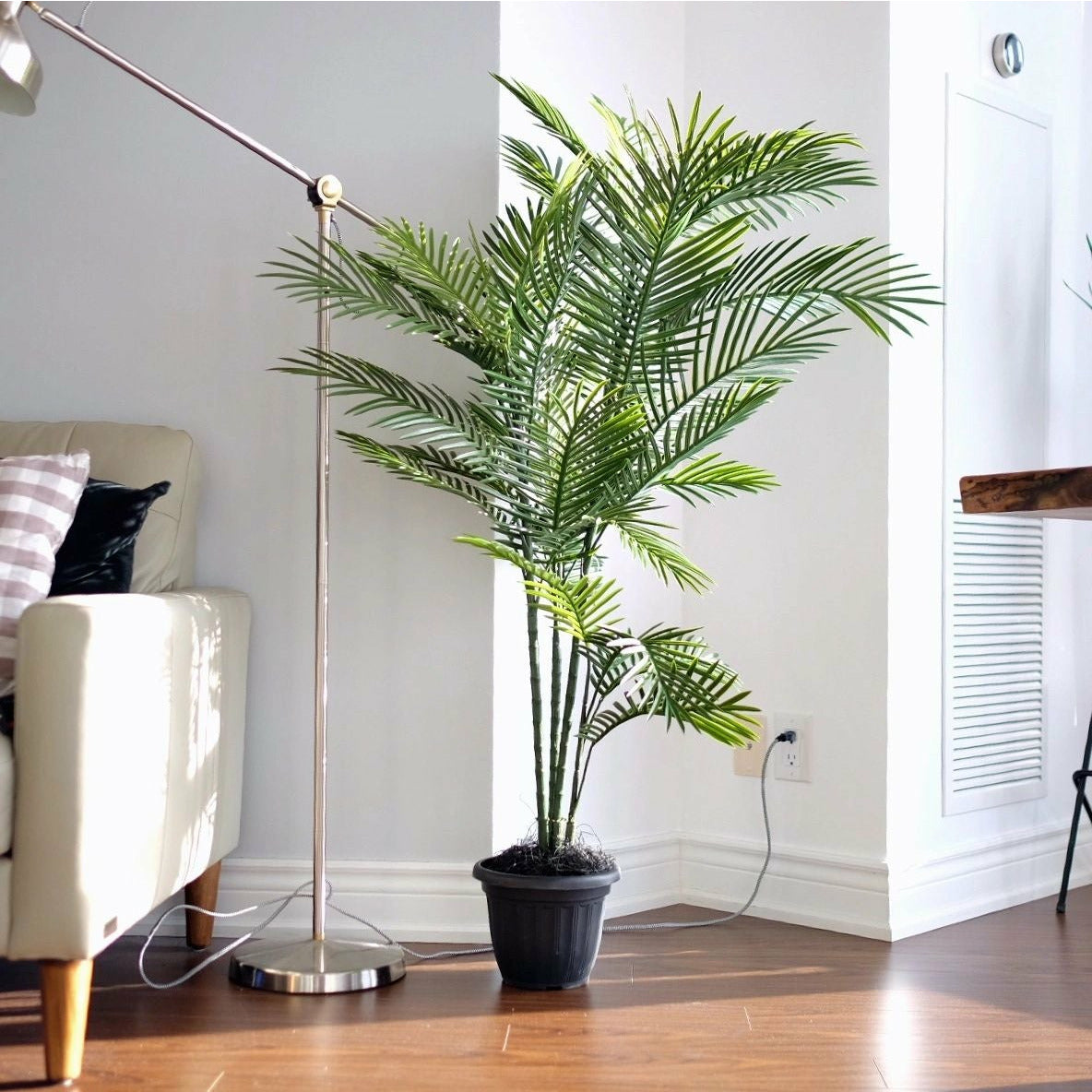 Position the Areca Palm nearby, allowing its fronds to spread gently outward.